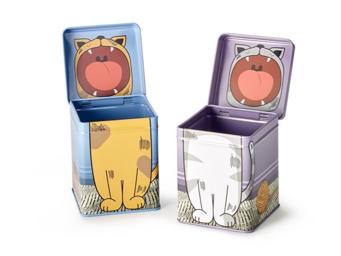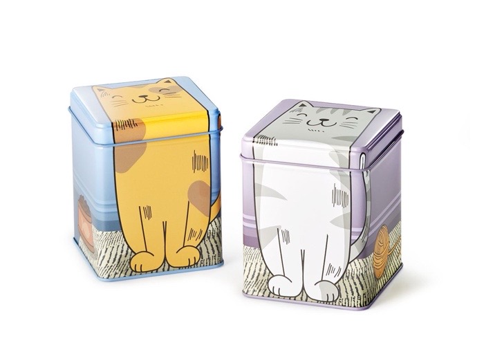 Mjau! Söta huskatten “Murphy” är en riktig karaktär. Och du kan ta det bokstavligt, för när du öppnar locket på denna burk visar den söta katten sina tänder. Nästan som om det skulle skydda innehållet i burken från nyfikna tjuvar som lockas av doften av deras favoritte. Plåtburken är idealisk för förvaring av 100 gram te. Den är också perfekt som present eller för att gömma smaskiga godsaker från din katt. Det praktiska gångjärnslocket gör det extra lätt att öppna och stänga burken.
