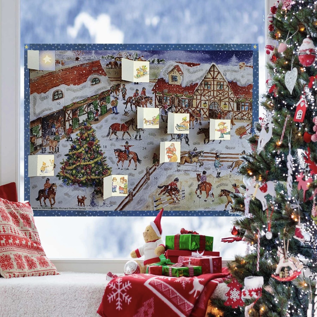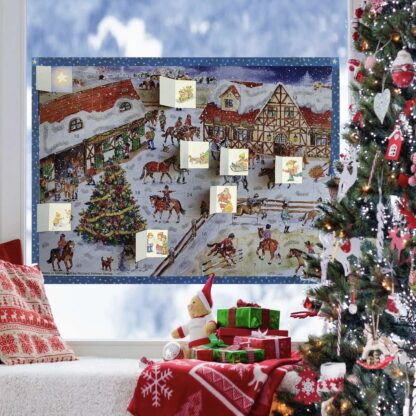 Adventskalender med silverglitter och 24 luckor att öppna.