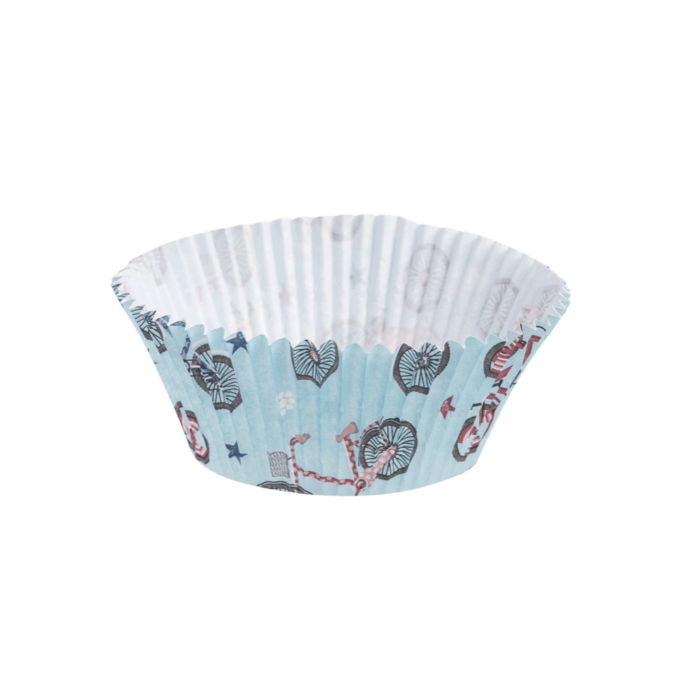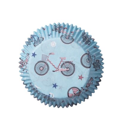 Fin bakform med cyklar på! Perfekt till bullar och bakverk. Värmebeständig upp till 220 ° C. Innehåller 60 st bakformar. Livsmedelssäker. Greaseproof. Made in Germany.