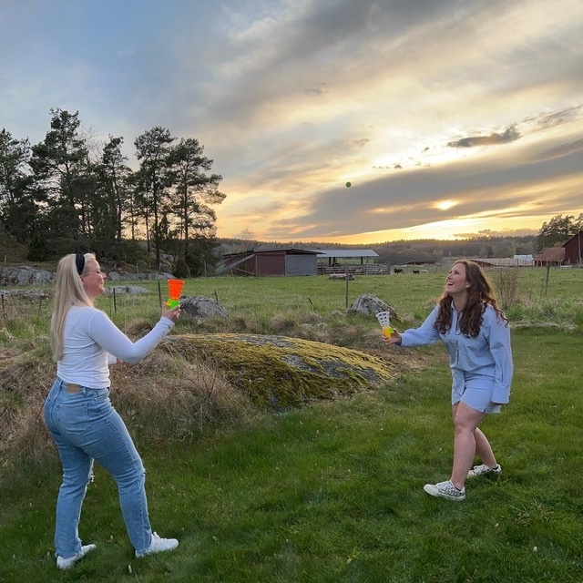 Fånga bollen i hållaren och klicka iväg den till medspelaren som ska försöka fånga den i sin hållare. Spelet är roligt för både vuxna och barn och passar bra från tre års ålder. Tillverkat av plast.