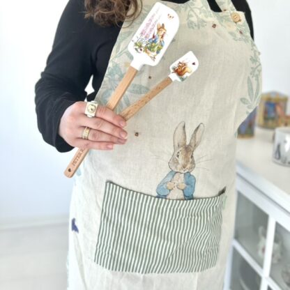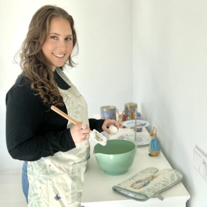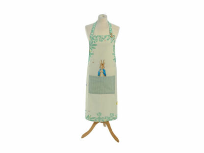 Både unga och gamla kommer att charmas av detta förkläde med de klassiska Peter Rabbit-illustrationerna av Beatrix Potter. Bomullsförklädet har knappar i nacken och en praktisk ficka framtill. 100% Bomull. 40 grader maskintvätt.