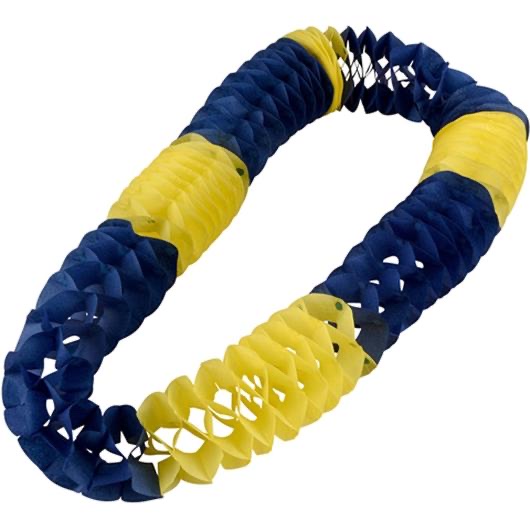 Pappersgirlanger på 2×2 meter i blått och gult. Fin att hänga upp och dekorera med vid festliga tillfällen, nationaldag och högtider.