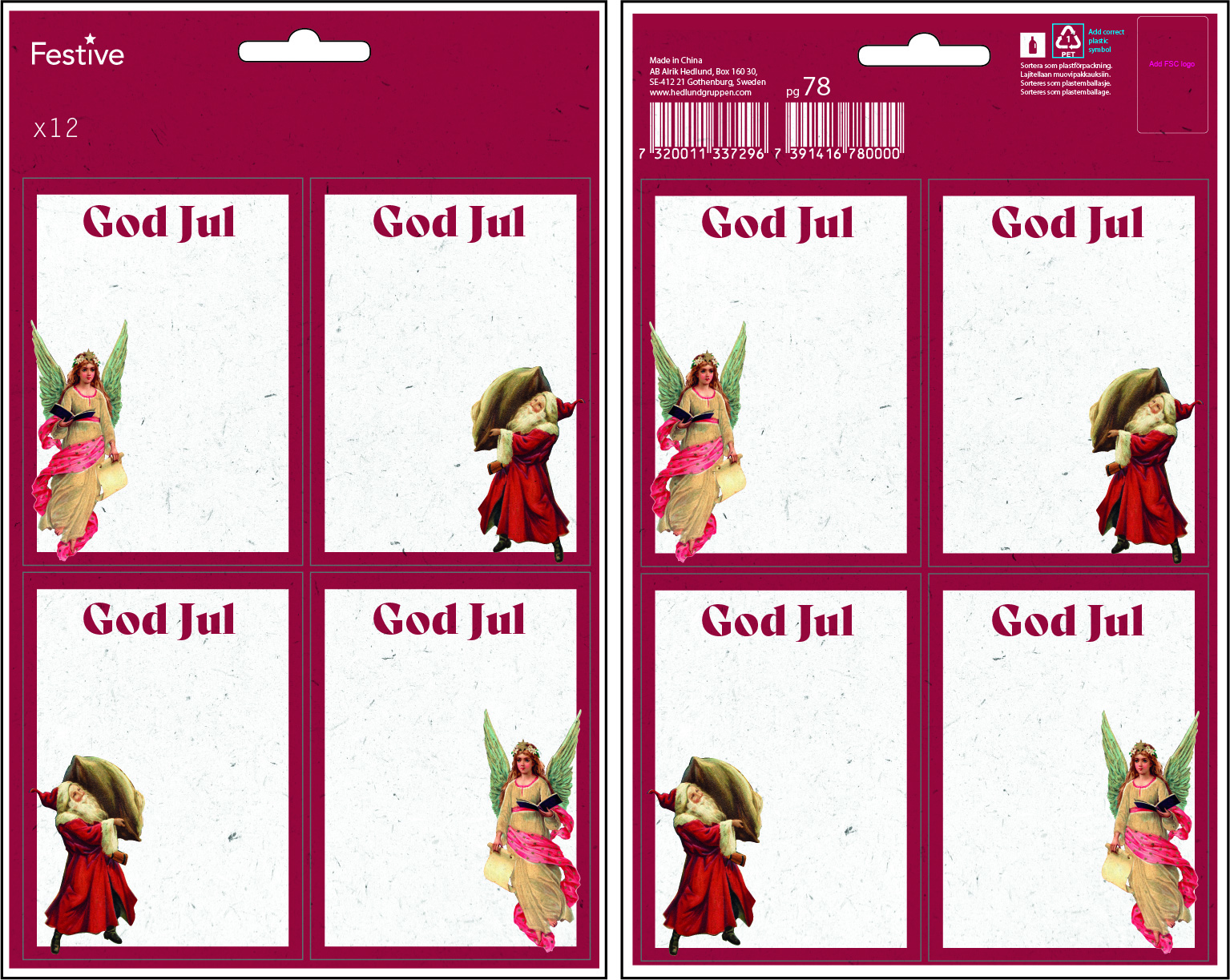 Juladresslapp Självhäftande 12-p Julnostalgi