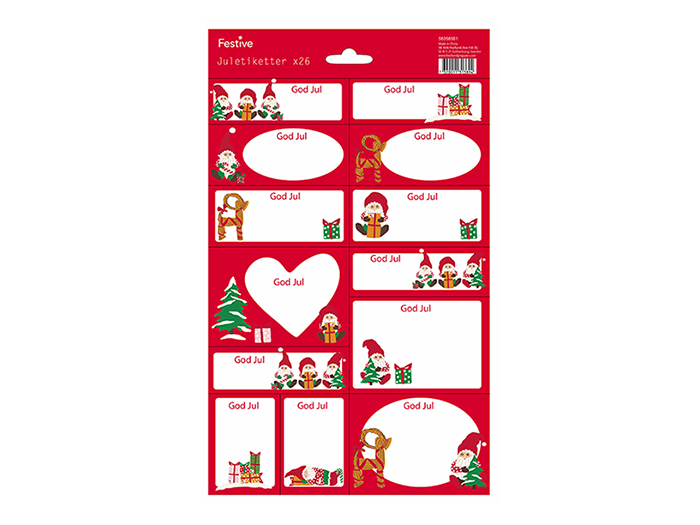 Juladresslapp Självhäftande 26-p Tomte-Halmbock