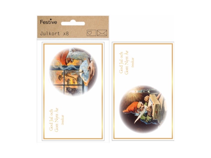 8-p Enkla kort med guldtext och guldram med kuvert. Jenny Nyström. 2-olika
