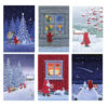 6-olika. Dubbelt kort med kuvert. Adventskalender med silverglitter och 24 luckor att öppna.