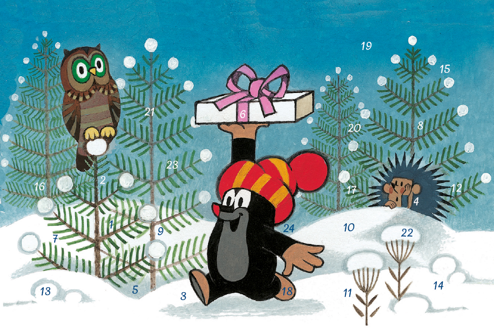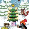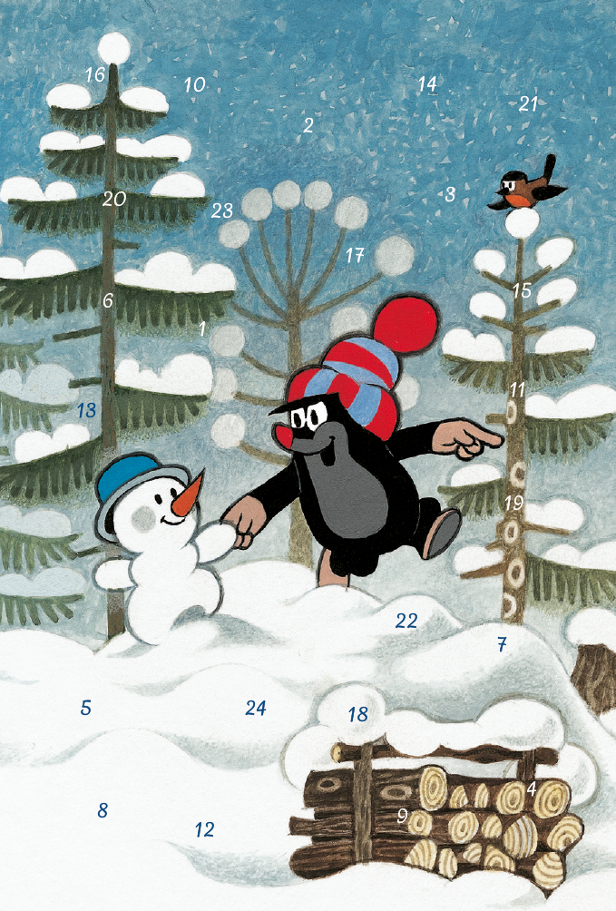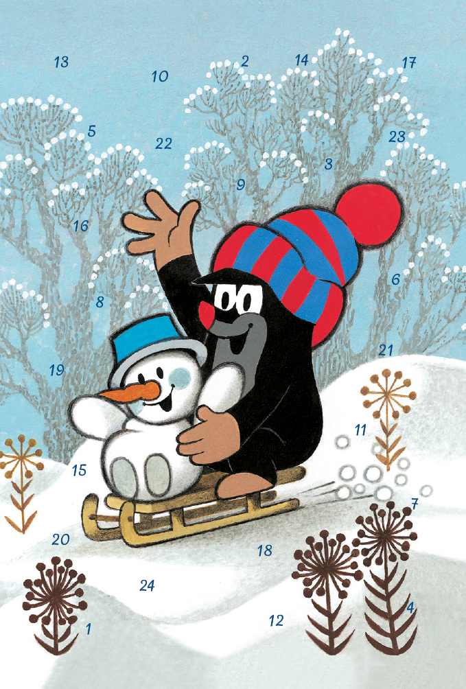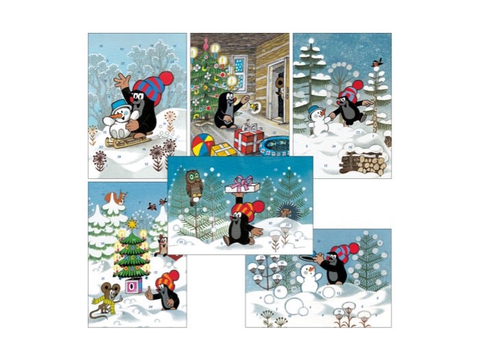 6-olika. Dubbelt kort med kuvert. Adventskalender med silverglitter och 24 luckor att öppna.