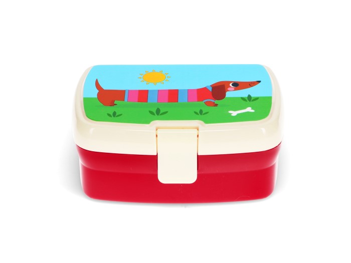 Denna lunchlåda har en avtagbar bricka med två praktiska fack, så det är enkelt att hålla grönsaker och frukter åtskilda.