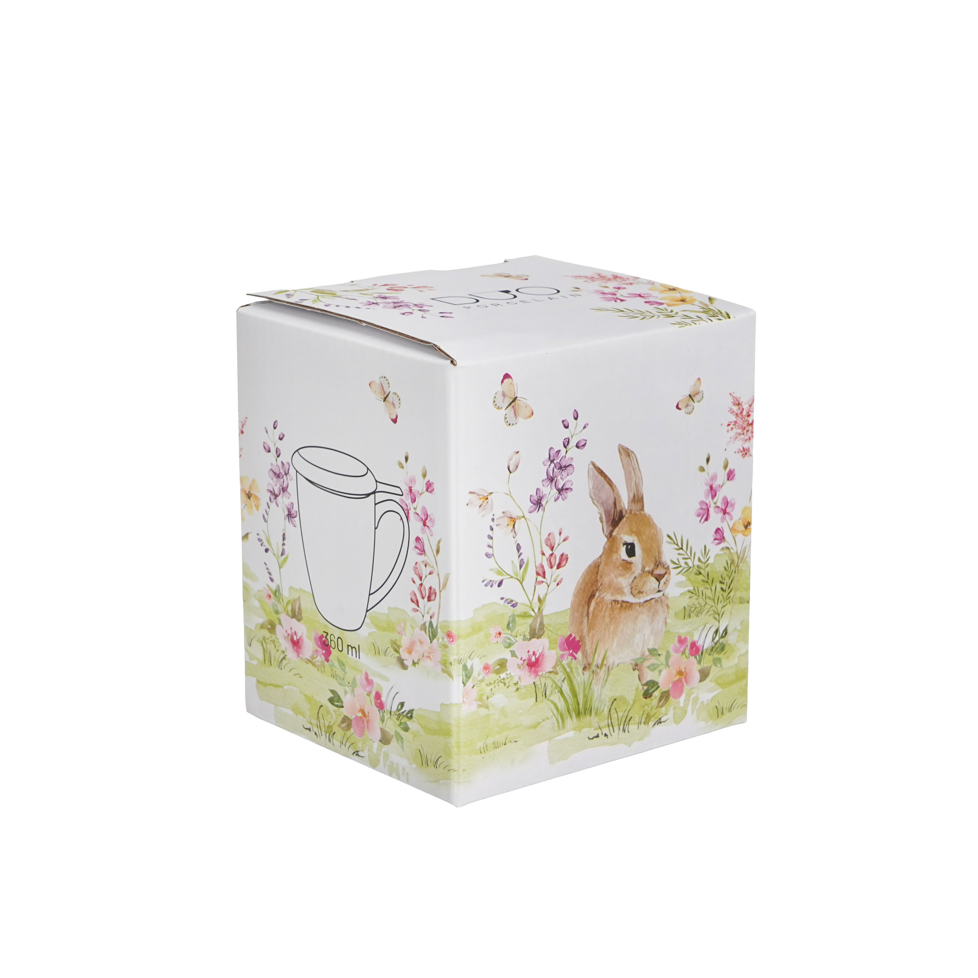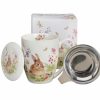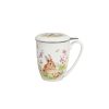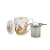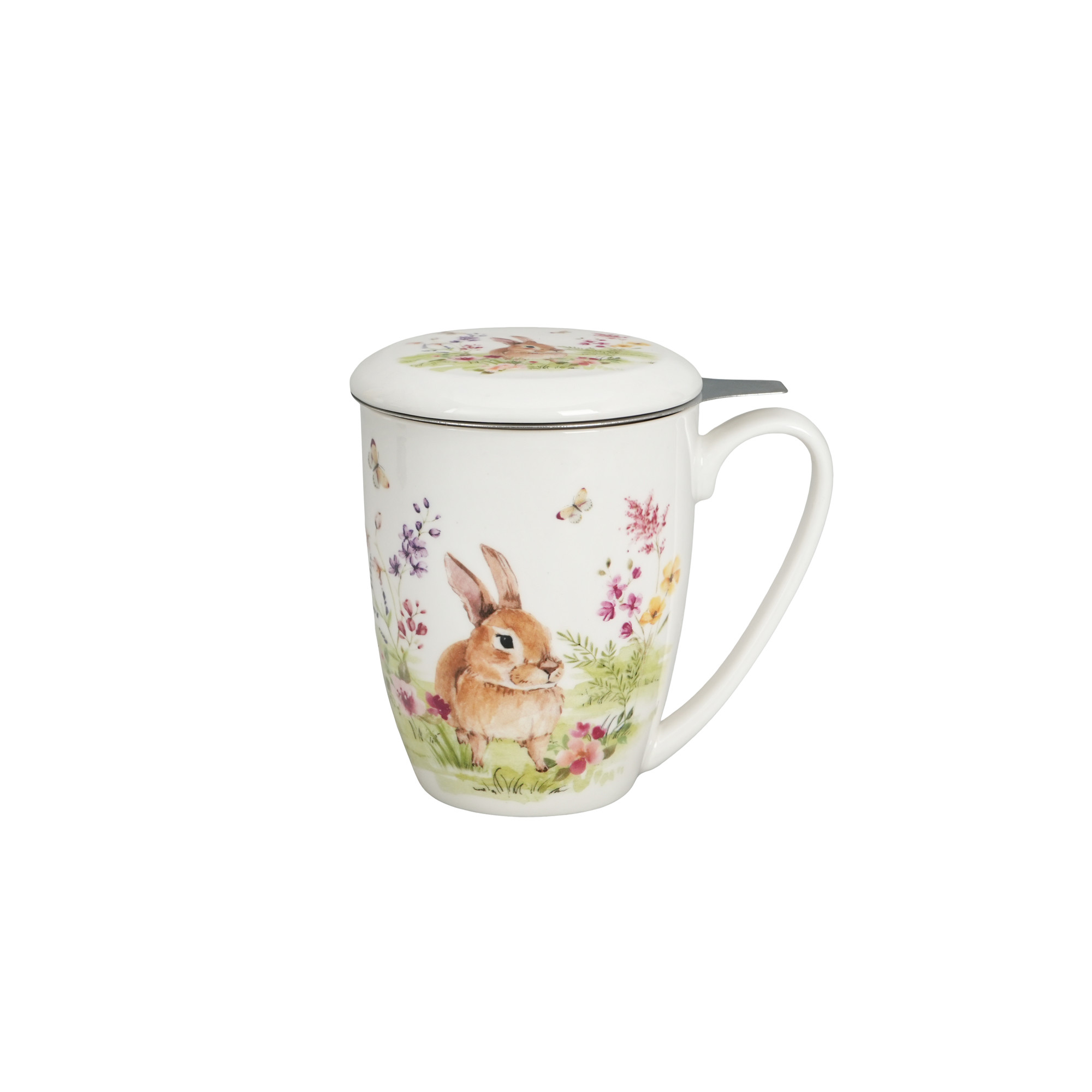 Mugg med lock och tesil – En dekorativ mugg i New Bone China med sött kaninmotiv, inklusive lock och rostfri tesil. Levereras i presentbox, perfekt för teälskare och som uppskattad gåva.