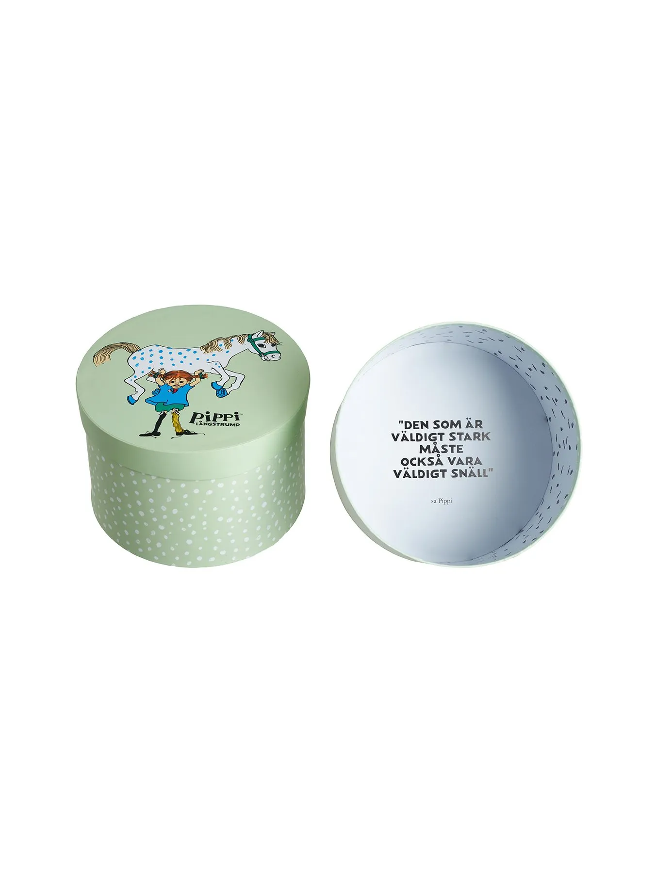 Pippi Långstrump. Fin pappask med text på insidan.