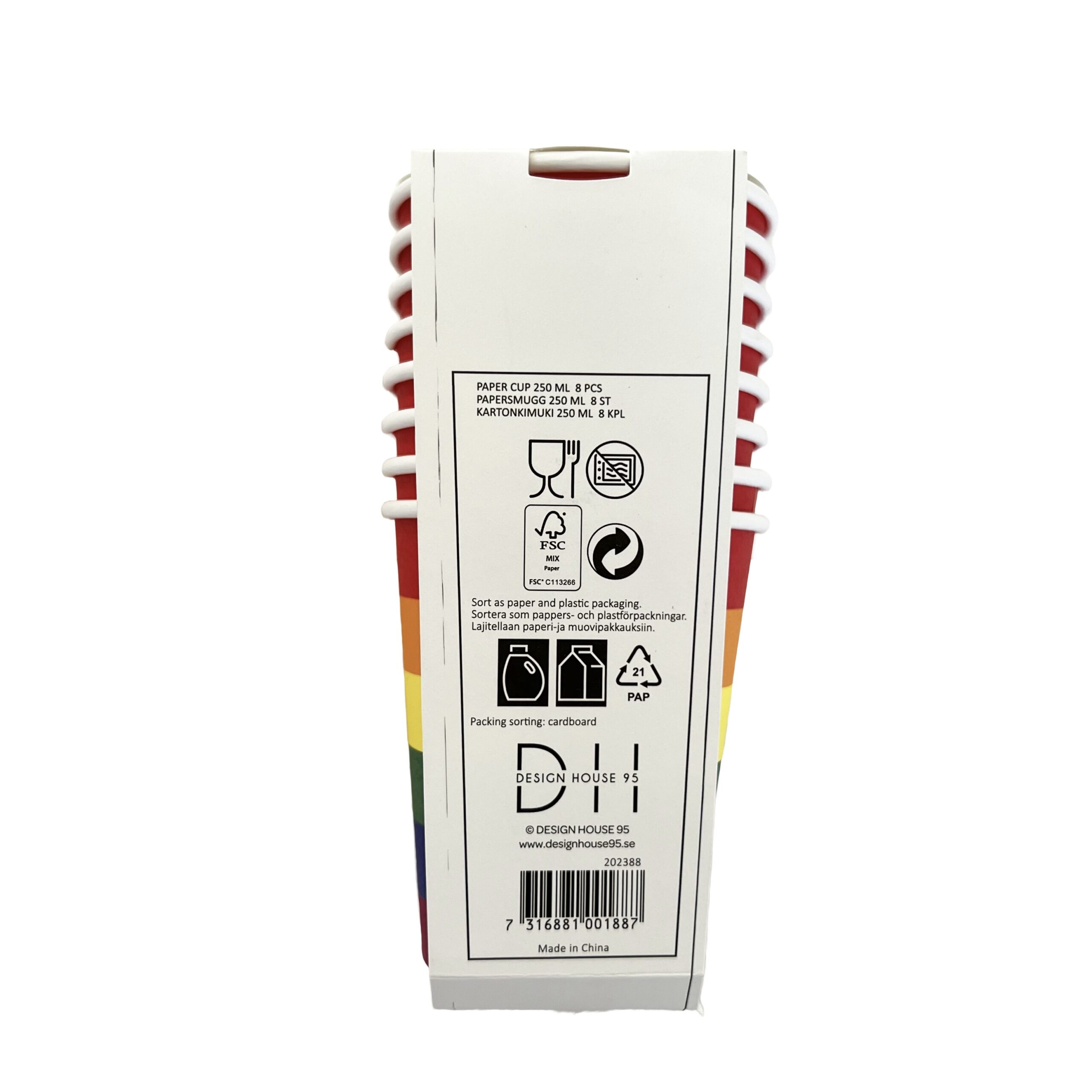 Pappersmuggar Pride innehåller 8 stycken pappersmuggar i regnbågens alla färger. Passar perfekt på exempelvis pridefesten, regnbågsfesten, födelsedagsfesten eller grillfesten!