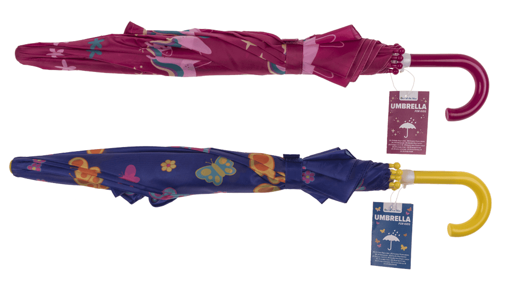 2-olika. Unicorn och Fjäril. 100% Polyester. Diameter öppet paraply 70 cm.