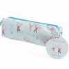 Barnpennfodral i ljusblått med gulliga motivet med mössen Mimi & Milo.