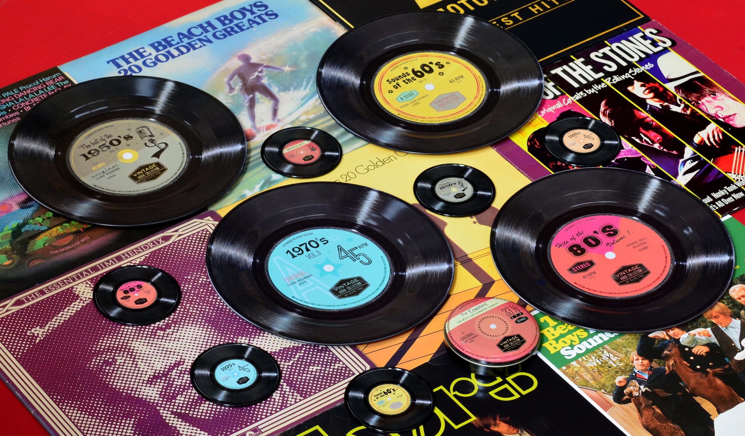 Coasters i Plåtburk 6-p Vintage Records