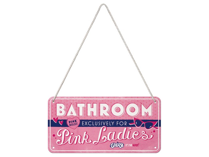 Plåtskylt 10×20 Hänge Grease Pink Ladies Bathroom