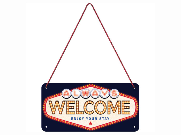 Plåtskylt 10×20 Hänge Welcome