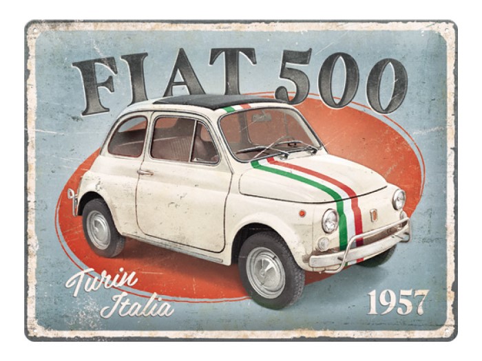 Plåtskylt Fiat 500 15×20