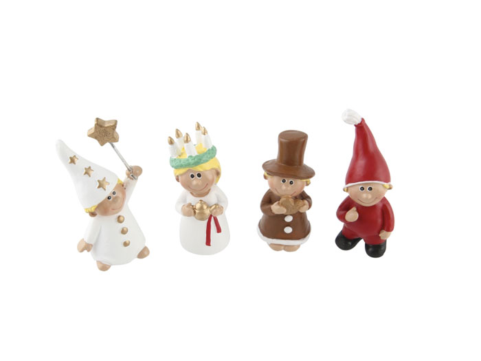 Fint luciatåg i poly. Kommer i PET-box. Stjärngosse, Lucia, Pepparkaksgubbe och Tomtenisse.