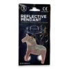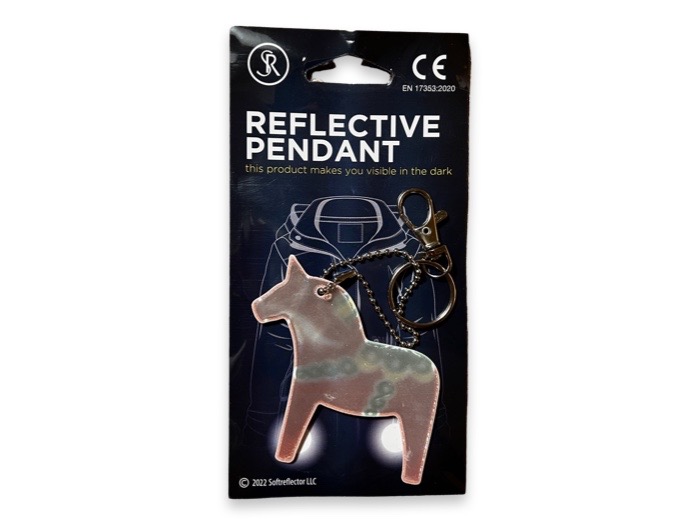 Reflex i form av en dalahäst. Karbinhake medföljer. Enkel att fästa på jackan. Made in Estonia.