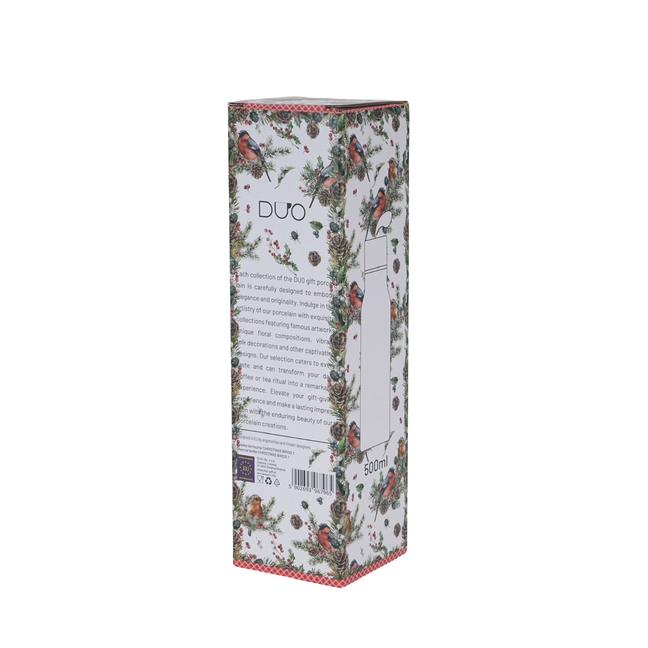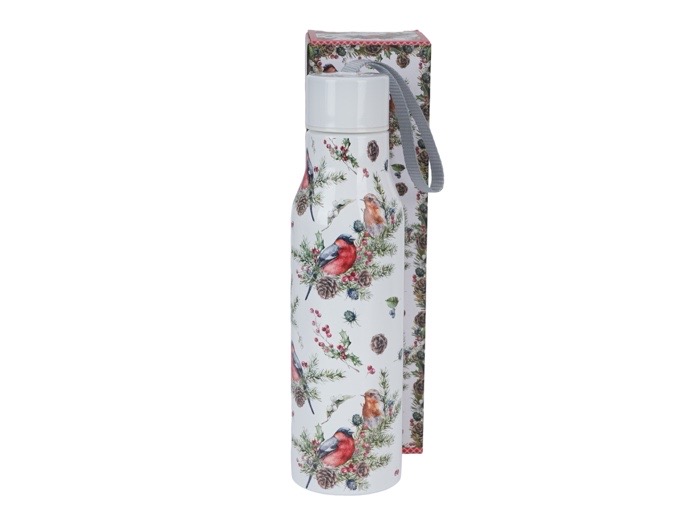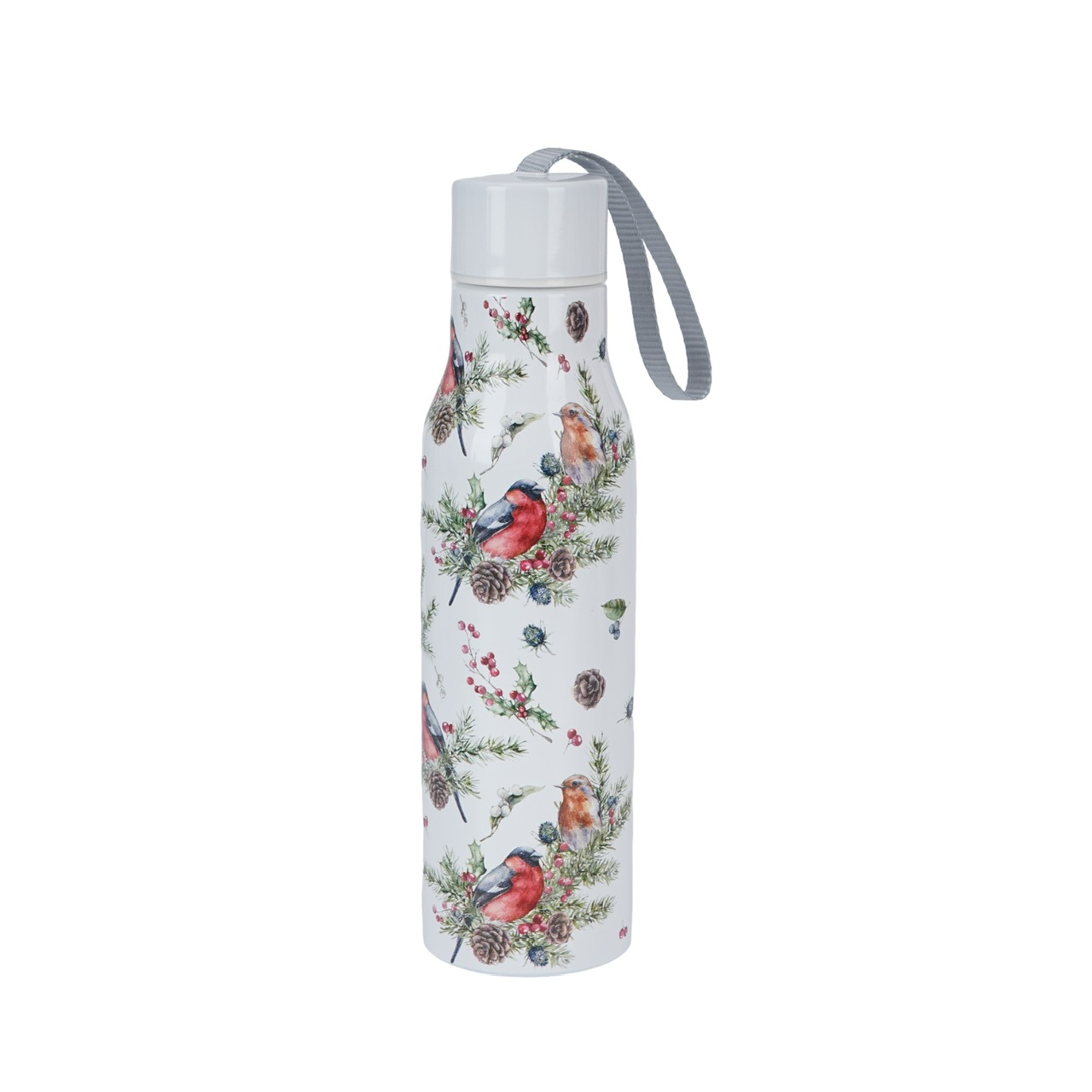 Stålflaska i rostfritt stål. Håller dryck kall i 24 timmar eller varm i 12 timmar. BPA-fri. Ej diskmaskin, mikrovågsugn eller frys. Ståltermos. Fint motiv med fåglar.