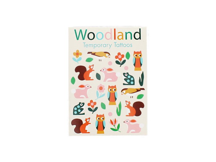 Tillfälliga tatueringar med gulliga skogsdjur ! En perfekt present till kalaspåsen. Inkluderar instruktioner om hur man använder tatueringarna.